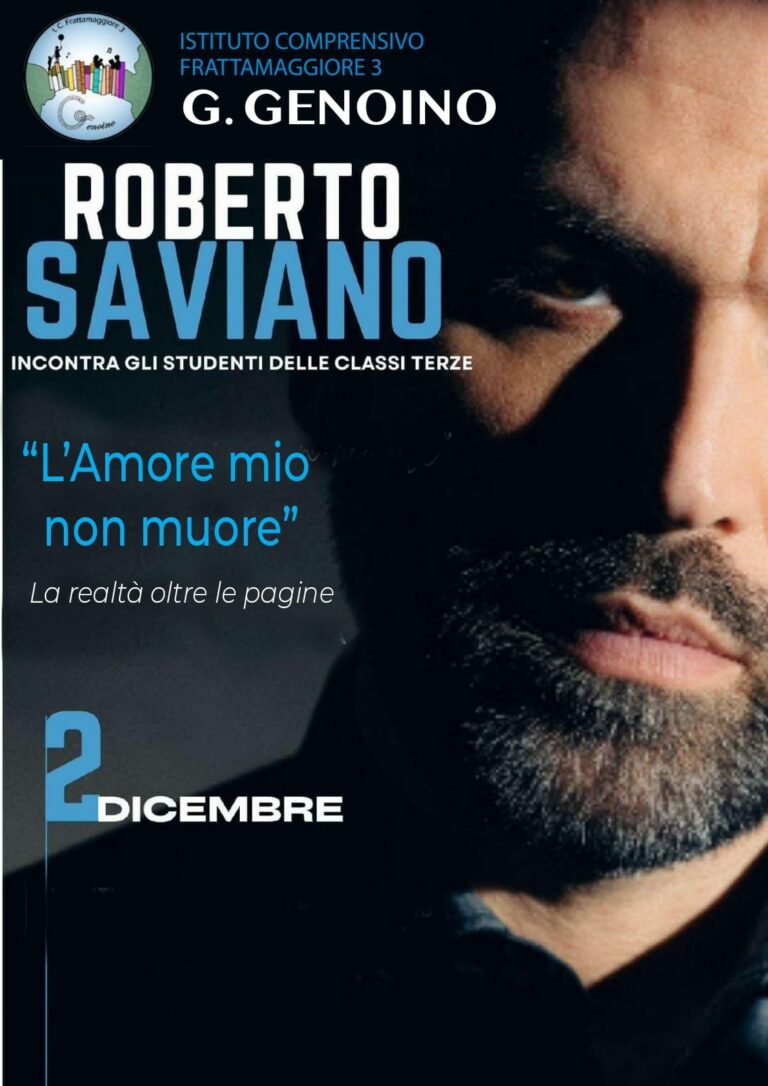 A tale proposito in coerenza con le attività finalizzate alla promozione e diffusione della cultura della legalità, della cultura letteraria e delle attività di orientamento il giorno 2 dicembre dalle ore 15,30 nell’Auditorium della sede centrale in Via Sen. Pezzullo, gli studenti e le studentesse delle classi terze di scuola secondaria di I° grado incontreranno lo scrittore ROBERTO SAVIANO con il quale potranno interagire in ordine al suo ultimo romanzo “L’amore mio non muore”.